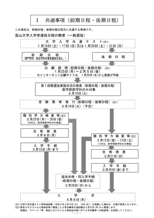 一般選抜 後期日程 を受験する皆様へ 富山大学