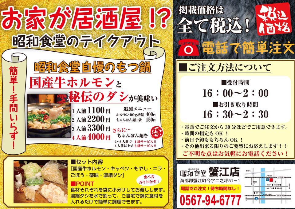 昭和食堂 蟹江店 蟹江 居酒屋 のテイクアウト ホットペッパーグルメ